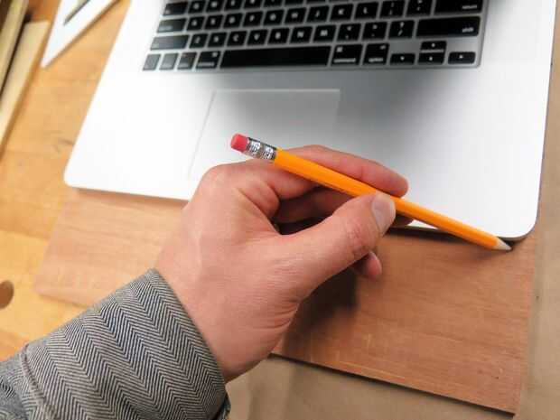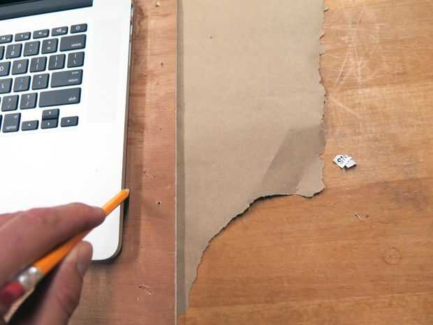 Alinee el portátil con el borde posterior del material, luego traza una línea en la que describe donde termina el portátil. Utilizarás esto como guía para trazar el corte transversal de la pieza de refuerzo a cada lado.