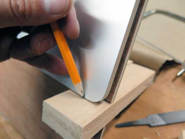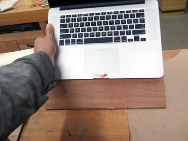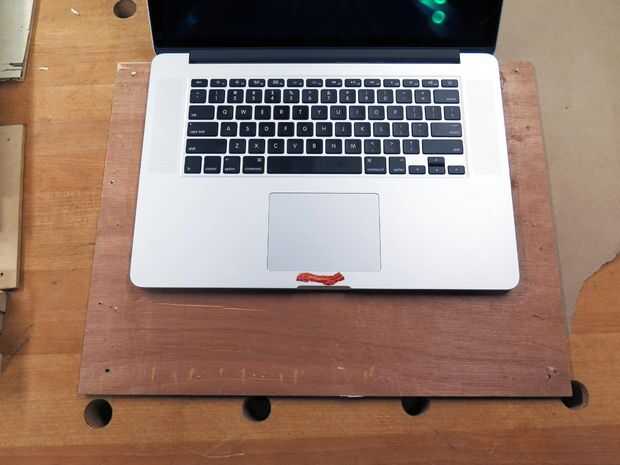 Coloque el portátil sobre tu pieza solicitada de 0,25" panel grueso (en este caso, una buena pieza de tablero Luon).