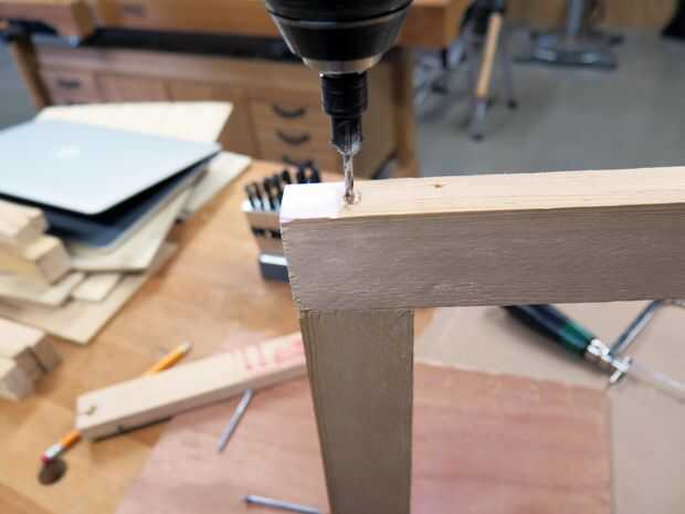 Montar la traviesa — pre-perfore los orificios con un avellanado de bits, y luego inicio 1.5" avellanado impulsión cuadrada Tornillo de madera a cada lado. Compruebe la alineación y ajuste.