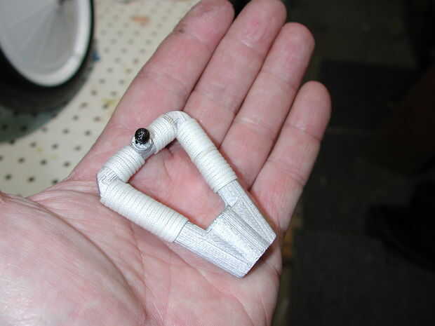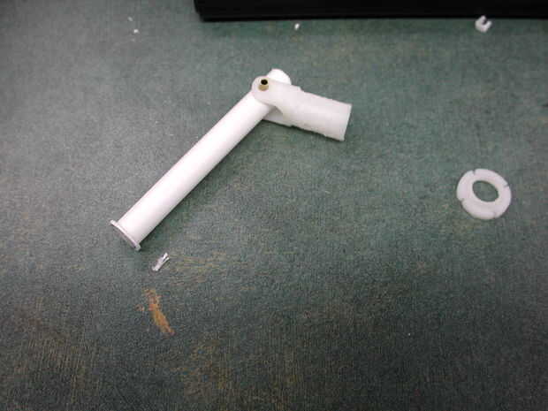 3) la aguja se hace de plástico blanco y está conectada a un trozo de alambre que pasa a través de un orificio en la esfera.
