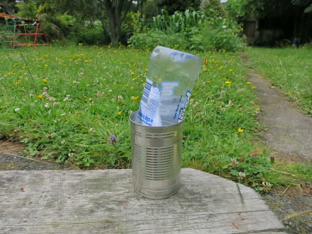 Darle una sacudida y ponerlo boca abajo en el poder. La dirección de la botella que desee el cohete para ir de la inclinación. Esperar.