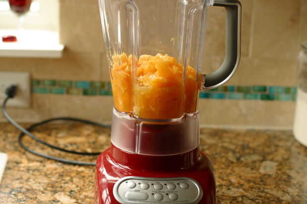 Poner la naranja y el azúcar en la licuadora y mezcle. Exprimir el jugo de Lima y limón y mezclar.
