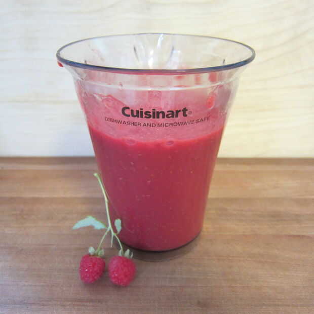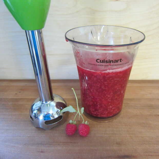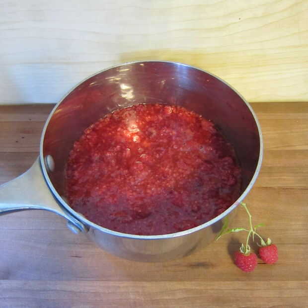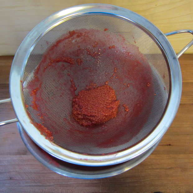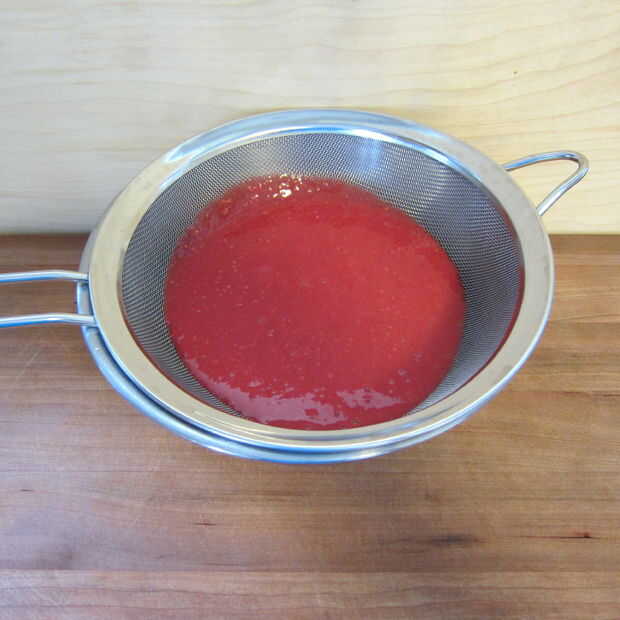 Si usted está usando bayas frescas sólo mezclarlos y colar por un colador de malla fina para eliminar las semillas.