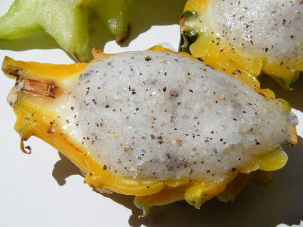 Fruta del dragón está en temporada y es un aperitivo muy sabroso y saludable. Es fácil de preparar y es ideal en ensaladas de frutas. RECUERDE QUE AL UTILIZAR UN CUCHILLO PARA PREPARAR LA COMIDA.Paso 1: Lavar la frutaPaso 2: Coloque la fruta del drag