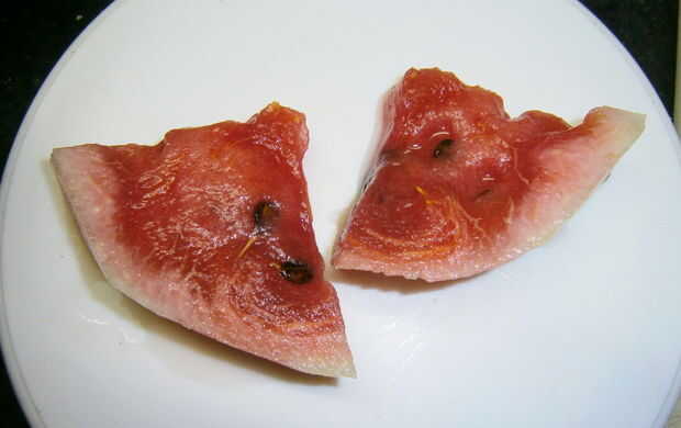 Pelar la sandía. Quitar las semillas. Cortarlas en trozos pequeños.
