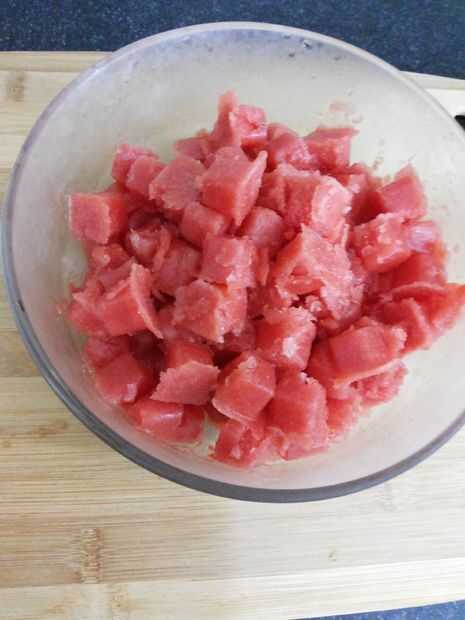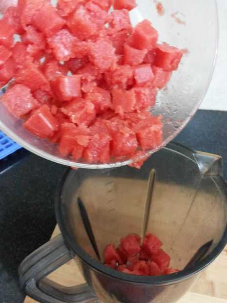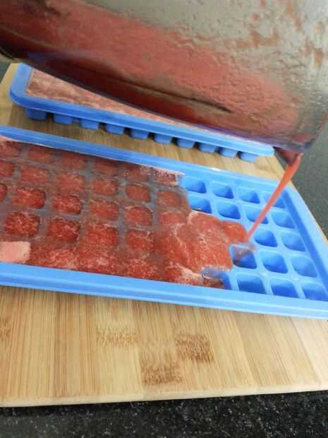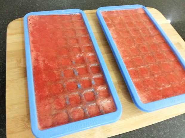 3. Saque los cubos de hielo de puré de sandía con la ayuda de un cuchillo.