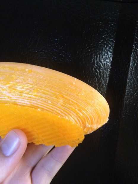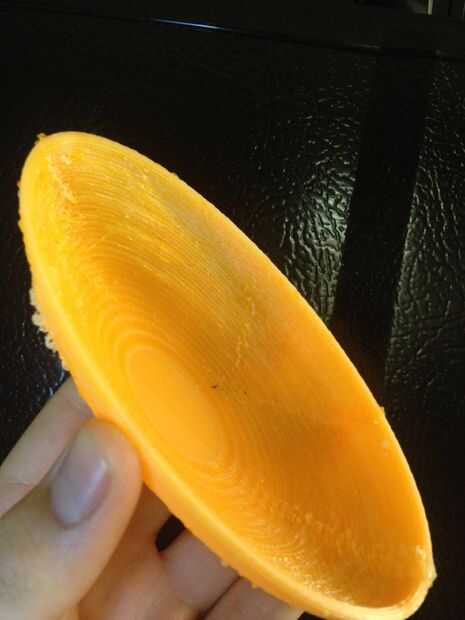Hubo algunas cuestiones estéticas como cadenas, rugosidad y los soportes de la parte inferior, como se esperaba desde el principio. Soportes eran necesarios para asegurar la base era estable, rugosidad fue atribuida a las capas delgadas y la decisión de tomar la sugerencia de doble de la altura de la capa de.4 mm a 8 mm es hasta el creador individual. En general, el recipiente muestra las capas muy bien, y es posible cortar, romper o de la arena de la rugosidad en el producto.