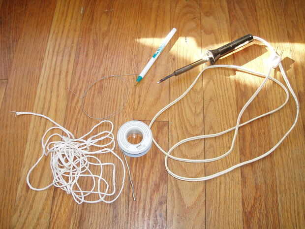 son las cosas que necesitas para hacer este proyecto, un simple bolígrafo con un barril y enchufe, un soldador, una soldadura de bajo punto de fusión, una cuerda de guitarra y algunos de la guita (por lo menos 10 pies.)