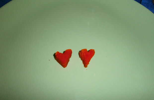 Tallar un corazón de la Magdalena con un cuchillo.
