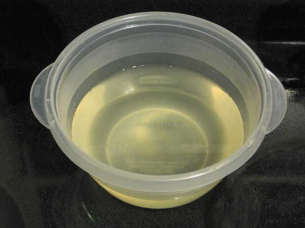 Hacen que el baño de alginato por verter el azúcar y el alginato de sodio en agua caliente y mezclar con una batidora de inmersión hasta que todos los sólidos se disuelvan. Esto látigo mucho aire en la solución, así cubrir el recipiente y apartar el baño hasta que salen las burbujas.