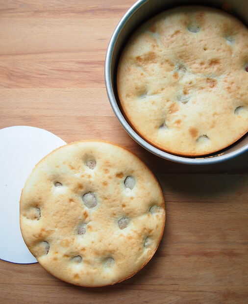 Deje que el pastel se enfríe completamente, luego quitarlos de las cacerolas.