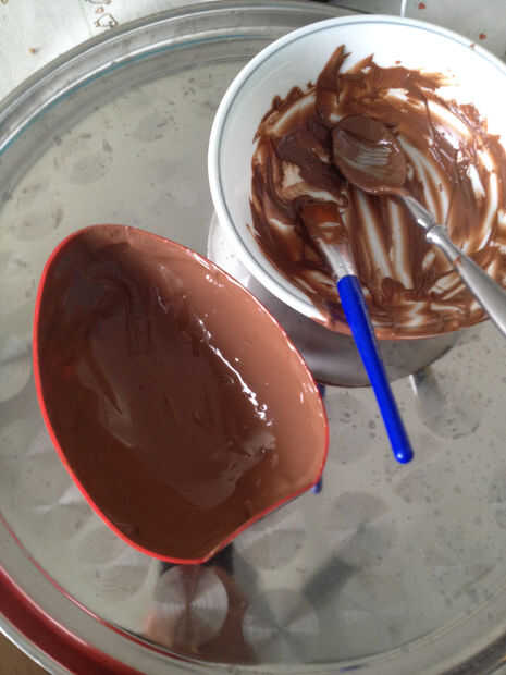 Derretir el chocolate oblea en intervalos de 30 segundos, no se quemen.