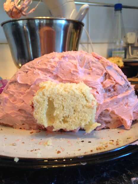 La primera vez que hice este estilo de pastel sorpresa utiliza una cacerola especial para hacer las bolas de pastel y color la masa y al horno el pastel desde cero y fue un proceso arduo y muuucho. Esta vez me fui para la velocidad: con una mezcla de