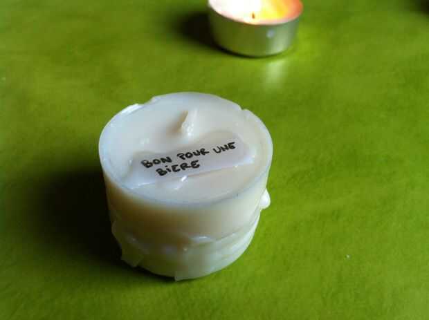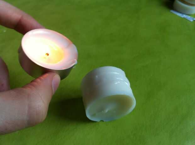 Al final, usted tendrá varias velas del tealight pegadas con cera, haciendo una vela larga.
