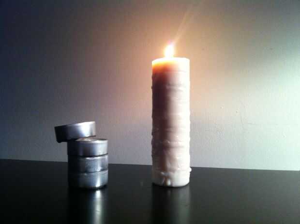 -cada vela tiene su propia mecha que comienza en la parte inferior de la vela de tealight con una parte pequeña de aluminio, por lo que cuando la llama llegue a esta parte, debe dejar de quemar. Luego tienes que quitar los papeles y encender el pabilo siguiente!