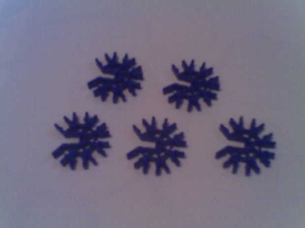este KVG del hula es muy simple y requiere sólo dos tipos de piezas. Gris de las barras (o los rojos más pequeños) y conectores de copo de nieve. Como se puede ver, el aro de hula está hecho de secciones y cada sección requiere conector 1 copo de nie