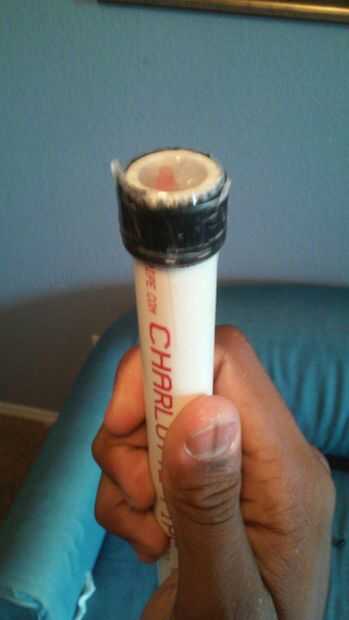 a continuación, tome la 1/2 pvc con fibra de vidrio adentro y hacen una cosa mira neumático en ambos extremos. Esto es así cuando se fuerza la 1/2 pvc en a 1" pvc, es un buen ajuste. Asegúrese de que esté apretado lo suficiente no se mueve pero no a apretado eso él no puede volver hacia fuera. Asegúrese de que no hay cinta en los extremos para que no caiga la fibra de vidrio. (aunque será muy difícil que sin él)