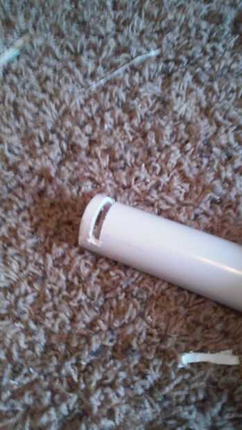 Tomar una sierra de cualquier tipo y corte dos ranuras cerca unos de otros y hacerlos como cerca del extremo como sea posible pero no se puede cortar la 1/2" pvc!!! debilitará su arco. A continuación tomar un extremo y corte la parte superior medio que asierra en. La arena de los lugares de que corte para asegurar que su cadena no consigue enredarse.