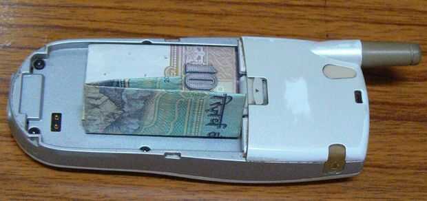 Lugar el proyecto de ley de la moneda debajo del compartimento de la batería. En algunas otras marcas de teléfonos, no necesitará retirar la batería. Puede colocar la cuenta de moneda entre la batería y la cubierta trasera.