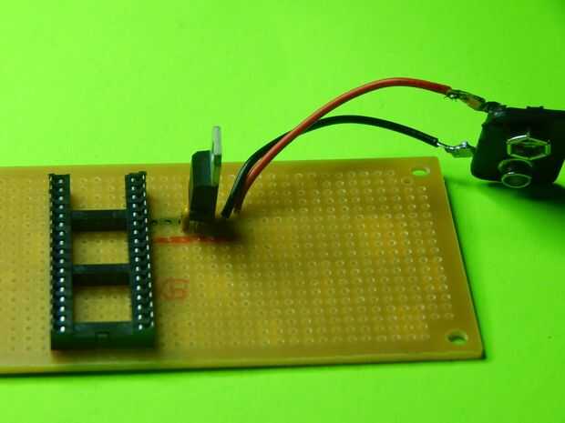 Ahora se suelde la toma de la batería y el regulador de 5v Sujete la Junta de tira. Asegúrese de que la tierra va a tierra, va de 5v a 5v y el 9v está conectado a la clavija de entrada del regulador.