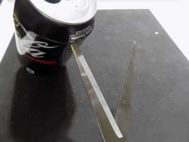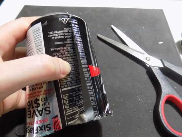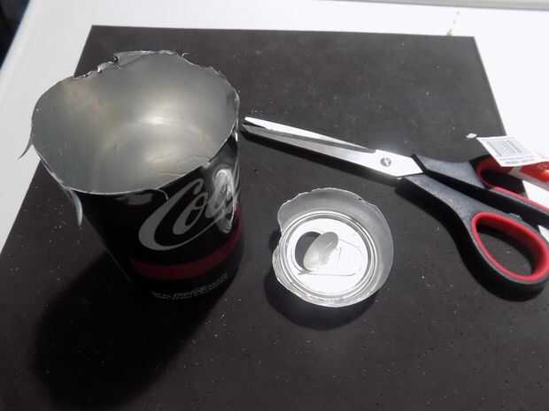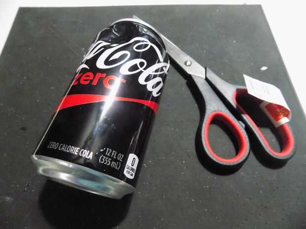 Meter la parte superior de la lata con la afilada hoja de las tijeras.