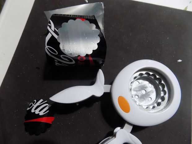 Golpear un trozo de la lata con cada sacador de agujero. La forma de mediano puede ser corte y pieza "feo" de la can, puesto que usted va ser los bancos lo mostrar el lado plata.