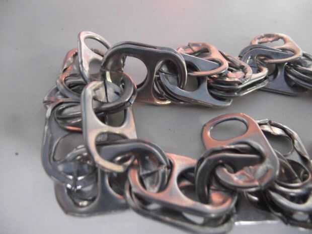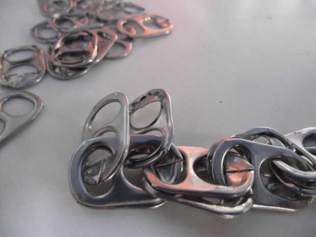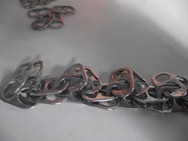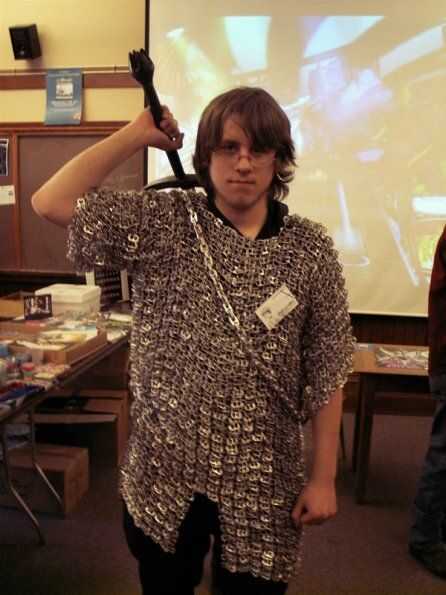 Por fin tengo una mirada sobre lo que parece en su totalidad. No hay ningún verdadero "patrón" a esto. Básicamente lo que hice fue hacer una pieza larga 2-3 pies por 6 a 8 pies con un orificio cuadrado para poner mi cabeza él. Luego amplié el área de hombro (esto es todo plano por cierto) tener una aleta para la manga. Entonces usted simplemente conectar las mangas a sí mismos y a los lados a sí mismos en más ChainTab a acomodar por tamaño. Esto hace que una camiseta completamente usable que está hecha completamente de las pestañas. Tengo llaveros en versiones posteriores, pero eso es simplemente para hacer más fácil reparar - aunque una nueva rara vez necesitará hacer eso. \