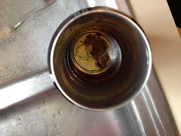 Yo estaba cocinando carne molida para tacos dorados así que una vez hubo un poco de grasa en la sartén. Me incline la cacerola sobre el lavabo y utilice una cucharada de la cuchara hacia fuera la grasa en la lata abierta. Ten cuidado porque la grasa se caliente y quema si lo obtenéis de usted y no es bueno para cualquier persona.