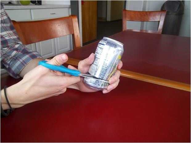 Sugerencia: Hacer un agujero con el cuchillo x-acto, entonces utilice tijeras para cortar la lata.