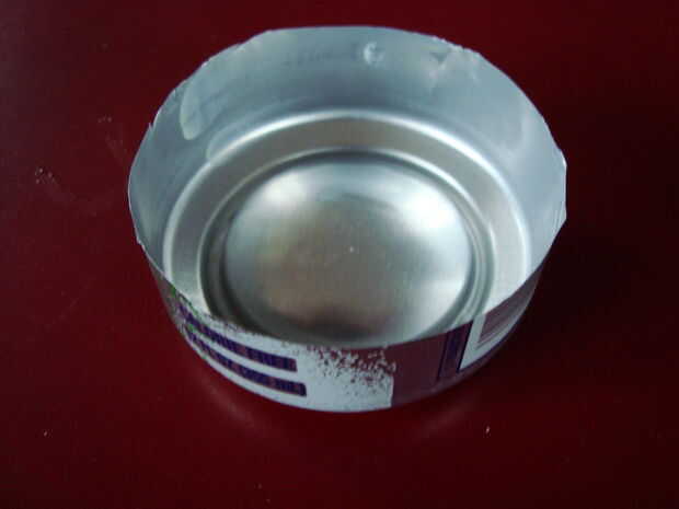 En la otra lata, medir y cortar 1" de la parte inferior.  Se creará el fondo de la estufa.