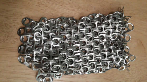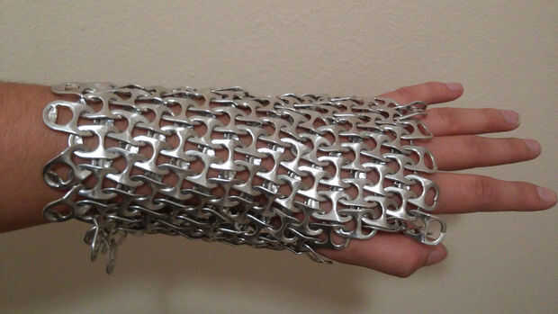 este es un traje de armadura hecha de pop/cerveza puede pestañas y alambre de cobre.Comenzó como unas pestañas ensartados después de ver Edward Scissorhands, pero rápidamente evolucionó como mi carácter compulsivo obsesivo en.Es sorprendentemente res