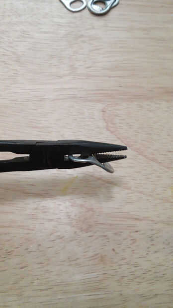 2. clip - el segundo paso de preparación es a la parte superior de la ficha con mis pinzas. Esto hizo una apertura real a donde he podido conectar el chainmaille.