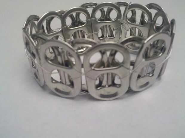empezar a los contenedores de reciclaje asaltar a!Aluminio de vuelta puede pestañas en joyería cool!Paso 1: Reúna los suministros Para empezar, necesita una pila de fichas pop. Entre 20-26, dependiendo de tamaño de la muñeca.También necesitas tijeras