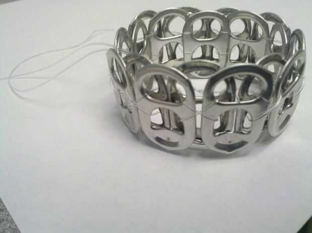 empezar a los contenedores de reciclaje asaltar a!Aluminio de vuelta puede pestañas en joyería cool!Paso 1: Reúna los suministros Para empezar, necesita una pila de fichas pop. Entre 20-26, dependiendo de tamaño de la muñeca.También necesitas tijeras