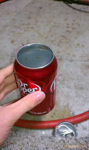 así que esto es una broma básica. Sólo vaciar una lata de soda y reemplazar el contenido con algo desagradable (salmuera jugo cualquiera?) Rápido y fácil como una broma de último minuto. Esta es mi primera instructable, perdón si su mala :(Paso 1: ma