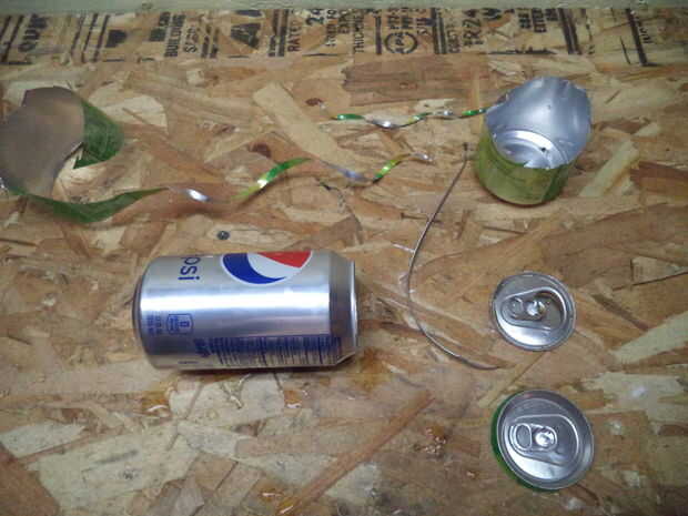 Durante este paso, recomiendo usar guantes y gafas, debido a la posibilidad de que usted podría conseguir empalado con una astilla de metal, y nadie quiere que, si utilizas tijeras, cuchilla agudo de la utilidad o incluso un fuerte tijeras (muy fuertes), es todo básicamente lo mismo. Desea evitar rayar la poder durante este paso, por lo que también recomiendo grabar alrededor de la línea en la can, para reducir los rasguños. O no, lo que funcione. Después de cortar, si el borde es cortantes o puntiagudos, usted querrá arena o archivo abajo, pero ten cuidado de fragmentos de metal. Use una máscara incluso. Después es lisa y uniforme, podemos preocuparnos por la tapa.