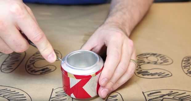 fuentes:-2 latas de refresco-rotulador-clavo pequeño-martillo-recortes de la lata-Sellante resistente al calor-alicates pequeños de punta-fibra de vidrio-archivo-penny-alcohol desnaturalizado-2 bloques de madera, uno ligeramente más grandeInstruccion
