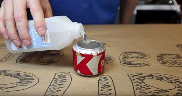 fuentes:-2 latas de refresco-rotulador-clavo pequeño-martillo-recortes de la lata-Sellante resistente al calor-alicates pequeños de punta-fibra de vidrio-archivo-penny-alcohol desnaturalizado-2 bloques de madera, uno ligeramente más grandeInstruccion