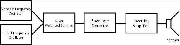 Este proyecto va a demostrar cómo construir un theremin sencillo en un protoboard utilizando que un refresco puede como la antena! Con la simplicidad en mente, el theremin en este proyecto sólo demostrará modulación de tono. El diseño implementado se muestra en el diagrama de bloques anterior. Sin embargo, no se necesita mucho trabajo extra para agregar control de volumen, así que os animo a probarlo si estás buscando un reto extra.