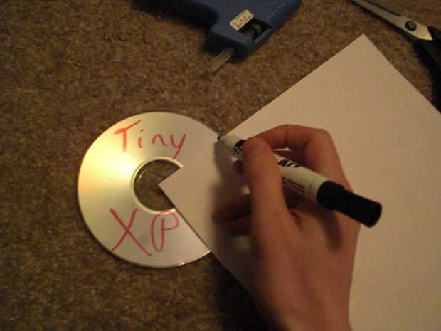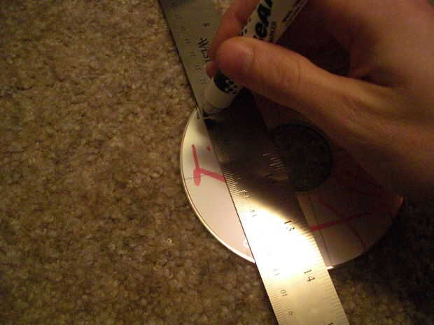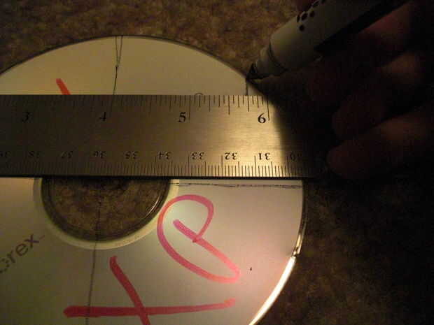 7) trace una línea paralela a través de lo CD que pasa por ambos 2 1/4" marcas en el otro lado.