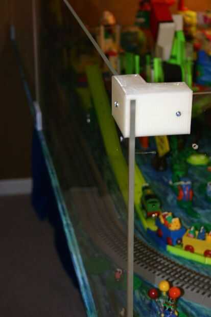 Empuje suavemente la pieza de esquina en la parte superior (hay una pieza izquierda y una derecha).  Cuando el acrílico esté ajustado y "cuadrados", taladre agujeros en el acrílico (para que coincida con los orificios en el soporte) y fijarlo con los tornillos.
