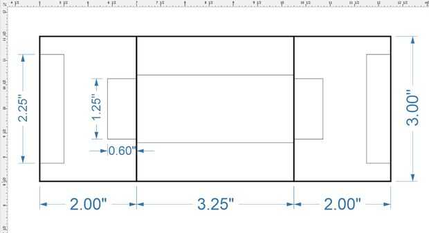 Otra vez para hacer más fácil crear un diseño simétrico se dejó caer una serie de rectángulos. Tamaño de los tres rectángulos grandes de perfil en el paso anterior. CorelDraw informes las longitudes de segmentos de línea (entre arcos), y solía para obtener el 2" y 3,25" dimensiones horizontales. Dos tacos de pie uno contra el otro son aproximadamente de 2" de ancho en la parte superior, por lo que decidí hacer lo más amplia del titular 3" de ancho. Luego añadí los rectángulos más pequeños para ayudar a definir las aberturas en cada pieza vertical y el estrechamiento de la base en el medio.