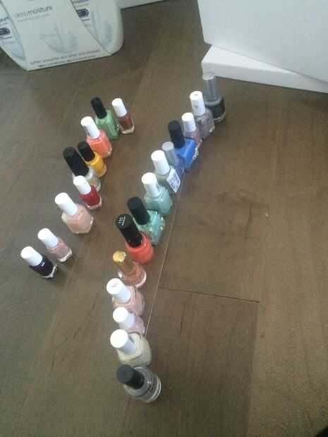 Decidí utilizar el soporte de acrílico para organizar mi colección de enormes uñas. Empecé por la medición de las dimensiones del cuerpo de mi producto. En este caso, las botellas de esmalte de uñas son 1-1/4 "x 1-1/4" cuadrado.