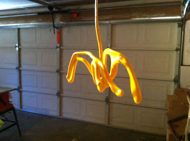 a continuación cruce el cable plasti dip. Hice 3-4 capas, no recuerdo exactamente cual. Colgué de un gancho en el techo del garaje mientras se secaba. Otra vez esto quedó seco durante la noche antes de lo usado.
