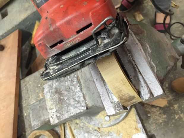 y uso papel de lija (siga la fibra de bambú para la superficie mejor) cc320cw para alisar la manilla del abrelatas del vino.