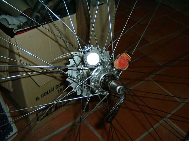 De esta manera se puede instalar fácilmente la batería cerca del centro de una rueda de bicicleta para alimentar luces fijadas en radios o en un casco (se ilustran estas aplicaciones en Instructables otros).