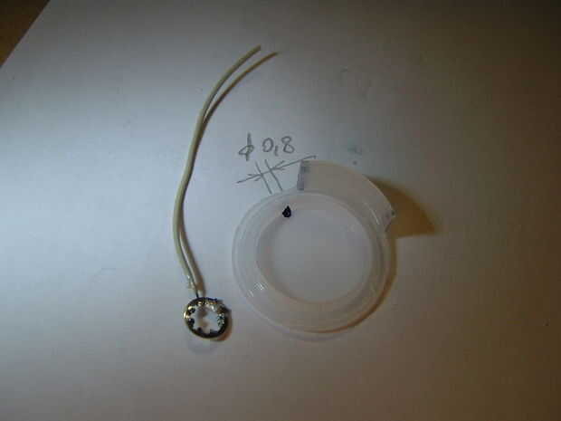 Como utilicé un trozo de un viejo PC cable plano el diámetro del agujero será aproximadamente de 0,8 mm.