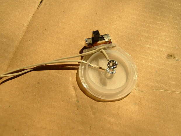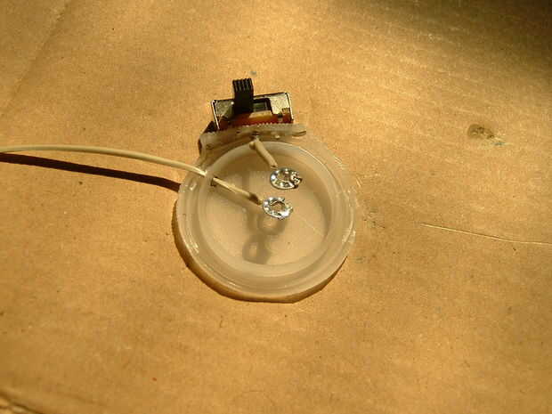 Soldar con autógena el alambre del contacto positivo (+) de batería en el pin central del interruptor y la salida por el otro. Ahora estás listo para insertar la batería dentro de la vivienda.