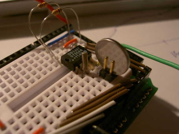 estoy experimentando con el DS1307 y Arduino, tuve que encontrar una manera de conectar una batería de CR1212. Rebusqué en mi caja de conectores y no encontraron nada que pudiera ayudar. Entonces, eurêka! Tuve una iluminación...