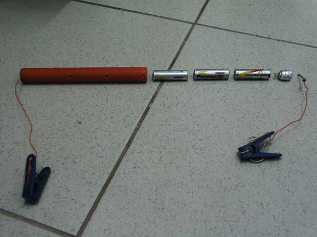 Esto es todo lo que tienes que hacer. Deslice el lado positivo de las baterías primero en el tubo, palillo en la primavera, usar un palo para comprimirla, y usted debe poder deslizarse en el cable del terminal negativo.
